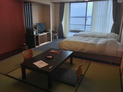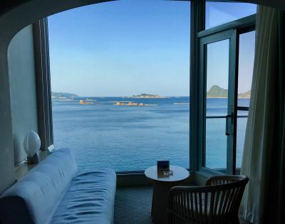 そのため、窓からの眺望は素晴らしく、海と数々の島の風景は、今まで泊まった日本のホテルでもベスト3に入る素晴らしさでした。