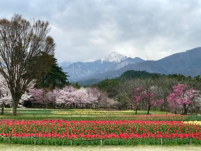 チューリップは色とりどりで、丁度桜も満開だったので綺麗でした