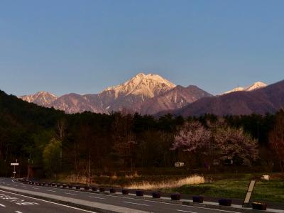 翌朝は晴天だったので、5時に宿を出て、この公園に向かう道路から常念岳の朝焼けと、反対側の山に登るサンライズを眺めました- 旅行時期