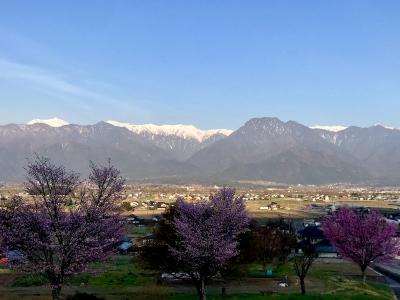 初日は雲がかかり山々がよく見えませんでしたが、桜が満開で美しかったです