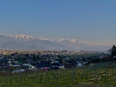 最終日は5時に目覚めると、外が赤く染まって来ていたので、慌てて厚着をして近くの国営アルプスあづみの公園(堀金、穂高地区)に登る道の途中に急いで車で向かい、常念岳が赤く染まる姿、反対側から朝陽が昇る姿を眺め、北アルプス展望美術館に移動してアルプスの美しい雪景色を堪能しました