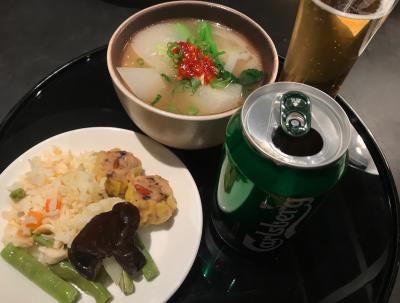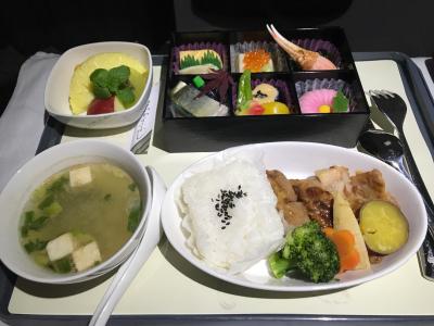 機内食はビジネスクラスとしては、ごく普通、一部香港らしい飲茶とかも少しありました。ワインのセレクトはまずまずでした。CA他の対応は比較的丁寧で、好感が持てるものでした。