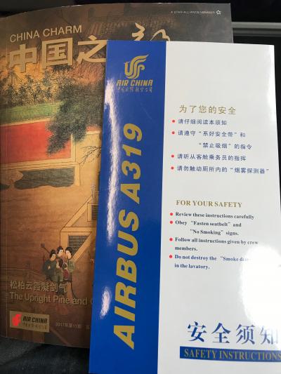 このあと2018年3月には、マイレージ無料航空券で関空-北京-ジュネーブと帰路の北京-関空に利用しました。こちらはシートもフルフラットで、映画も日本語対応のものもあり、食事も洗練されていました。ワインの種類もありました。CAも成都路線とは違って洗練された女性たちでした。機内のアメニティ・セットはなんとロクシタンでした。- 旅行時期