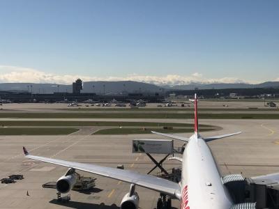 チューリッヒ空港の Eゲートのビジネスクラスラウンジは、外に出られるテラス席もできていて、アルプスの山並みや飛行機の発着を眺めることができます。料理や飲み物も種類が豊富で楽しめました。