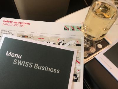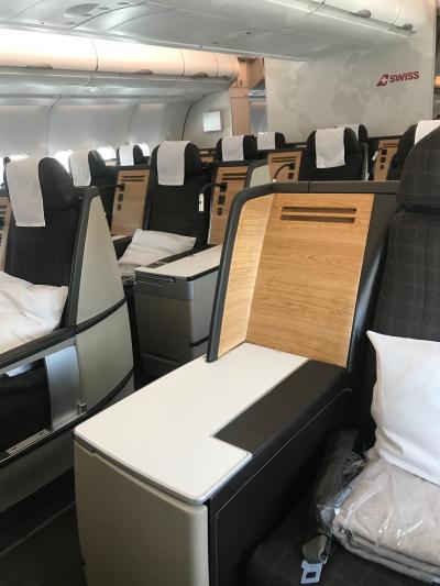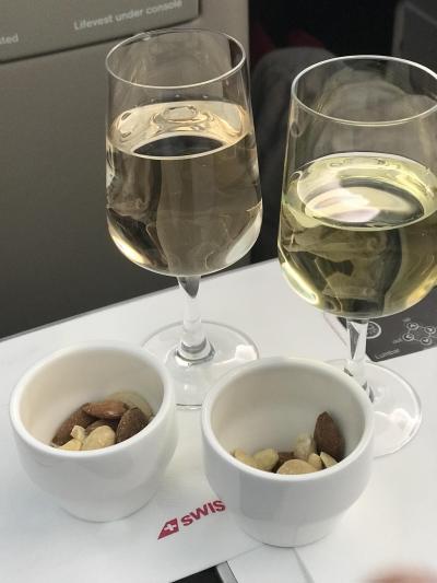 機体はA330-300でシートはフルフラットに当然なります。窓側席は2人席と1人席が交互に縦に並ぶ変則的な作りでした。食事は味も、盛り付けも洗練されていますし、器が可愛いです。ワインもスイスワインはなかなか飲めないので嬉しいですね。機内アメニティセットが入ったバッグも、後でも使えるようなデザインでした。- 旅行時期