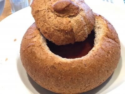 ツェルマットには10数回行きましたが、必ずここのパンに入ったトマトスープを食べに行きます。スープの旨味がパンに染み込み絶品です。パンも全て完食しましょう。
