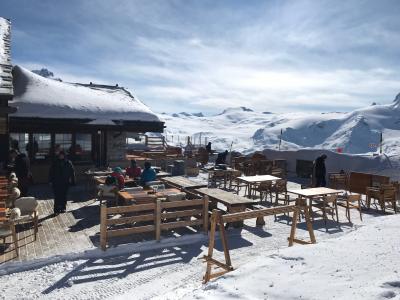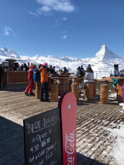 ツェルマットの展望台ではどこからもマッターホルンが見られますが、一番バランスよい姿を見せてくれる場所です。天気によい日はテラス席でゆっくりと、食事やコーヒーを楽しむことができます。