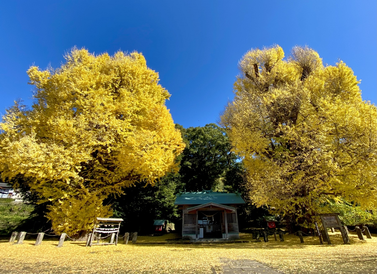 2本の銀杏は樹齢600年とも1,000年とも言われており、神武天皇がここから東征に出発前お手植えされたとの伝説があるようです。神武天皇が立ち寄った地を記念する石碑がありました。「腰掛石」と呼ばれる座椅子型の石はどこにあるかわかりませんでした。- 旅行時期
