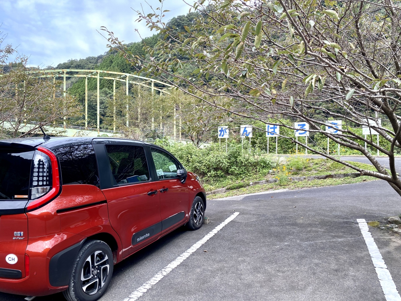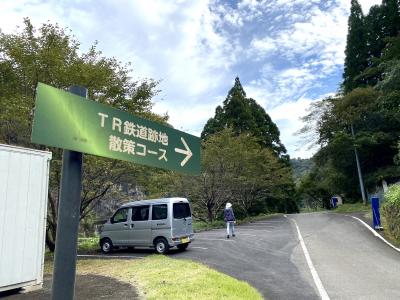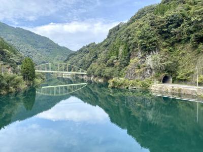 今回の旅最終日に一番立ち寄りたかった場所でした。台風被害で廃線となるまでは延岡-高千穂間で運行されていた旧高千穂鉄道の吾味駅跡からレール後に造られた散策コースを歩いて行くと、カーブの湾曲が美しい橋が見えます。