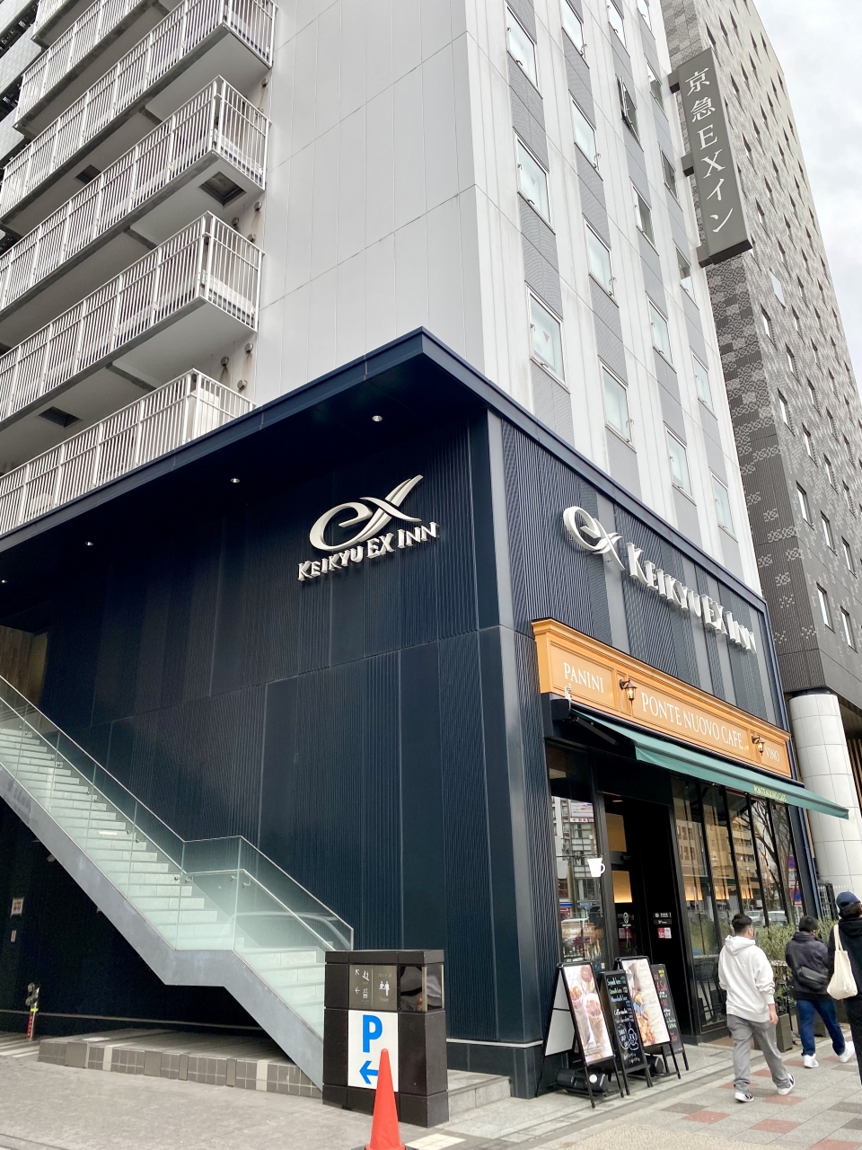 エントランス外にソファのコーナーがあります。喫煙エリアは外の道路側にありますが、駐車場入口の方の敷地内にベンチがあるので、そこで吸ってましたけど。2階に女性陣のみ使用できる大浴場があります。使っていませんがコインランドリーが屋上にあるようです。1階にカフェがあり朝食が取れます。近くにコンビニはいくつかありました。- 旅行時期