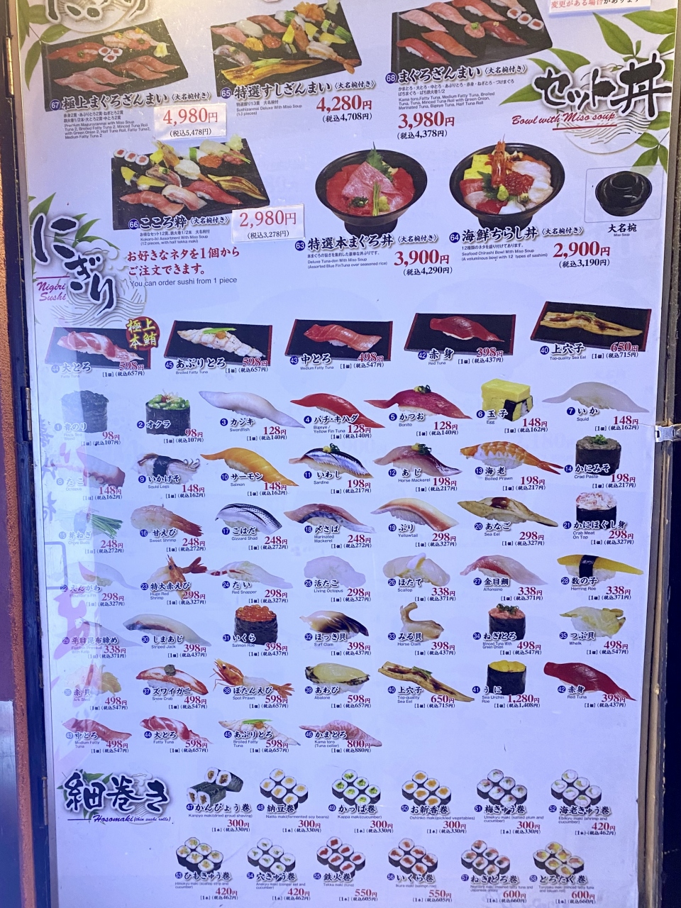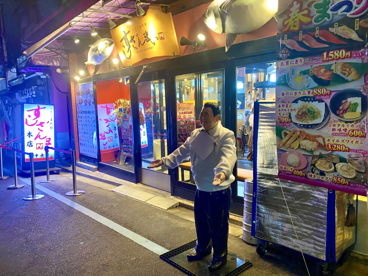 ロッド・スチュワートのライブ終了後に行きましたが、祝日のため築地場外市場はどこもお休み。こちらは24時間オープンで年中無休のため助かりました。