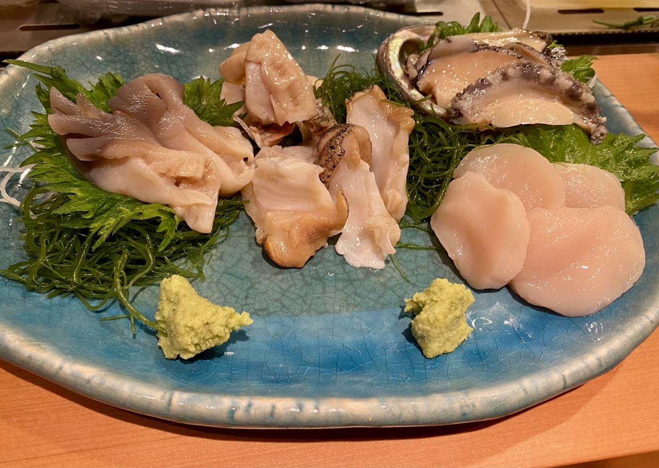 我が家は寿司そのものより、お酒のおつまみ的なものをいただく方が多いので、貝類や北海道ならではの食材をまずはいただきます。その後、少しにぎりなどをいただいて1,5000円程度にはなりますが、都会でこのレベルを頂いたらもっとかかりますので、まあ妥当なところかと考えています。コロナの際にも毎年寄っていたので、板さんにも顔や好みを覚えていただきました。- 旅行時期
