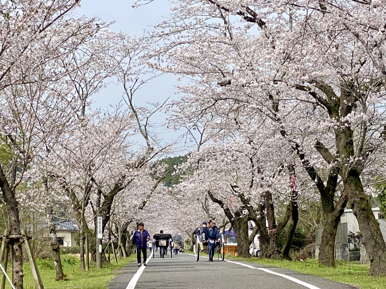 日本の桜100選に選ばれているだけあって、周辺で2,400本の桜があり、2km続く桜並木や高台にある母智丘神社からの眺めも素晴らしかったです。