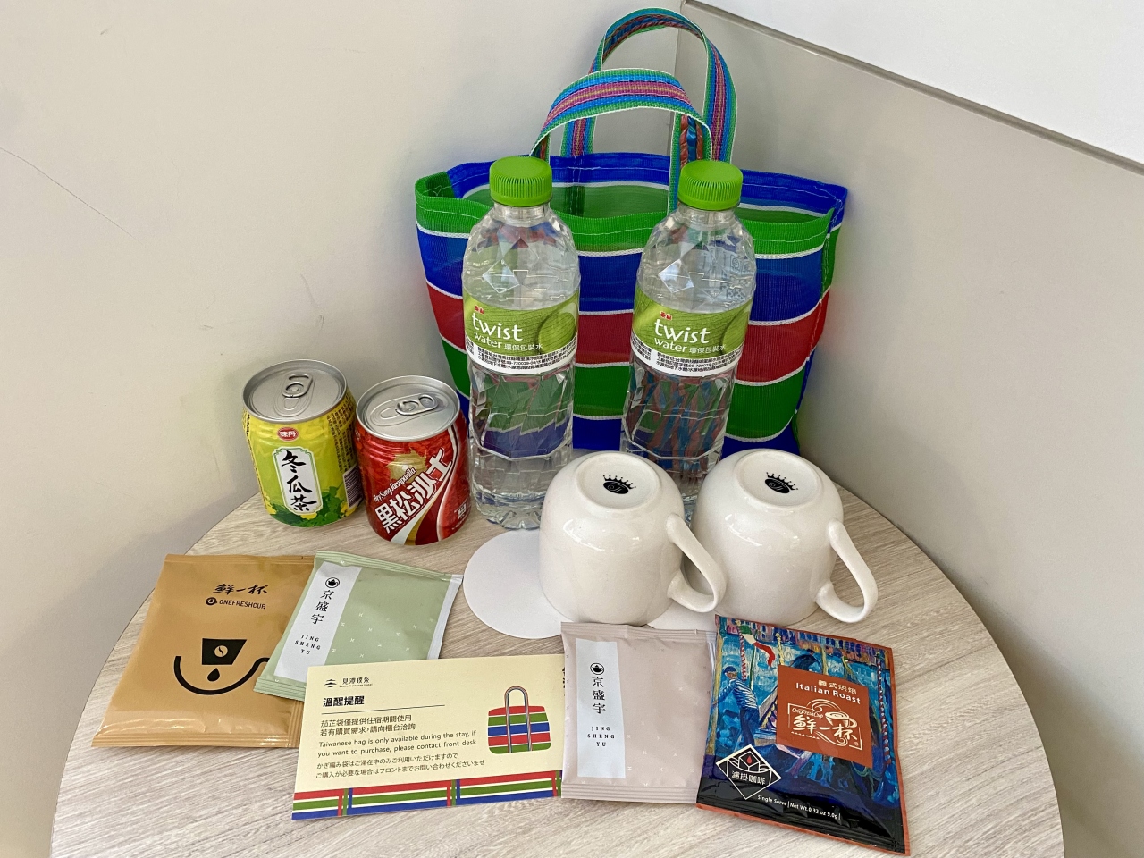 クローゼットは扉付き、中にバスローブ、セーフティボックスがありました。ミネラルウォーター2本、インスタントコーヒー、ティーバッグは毎日もらえますが、インスタントコーヒーは甘いので持参したものを使用しました。