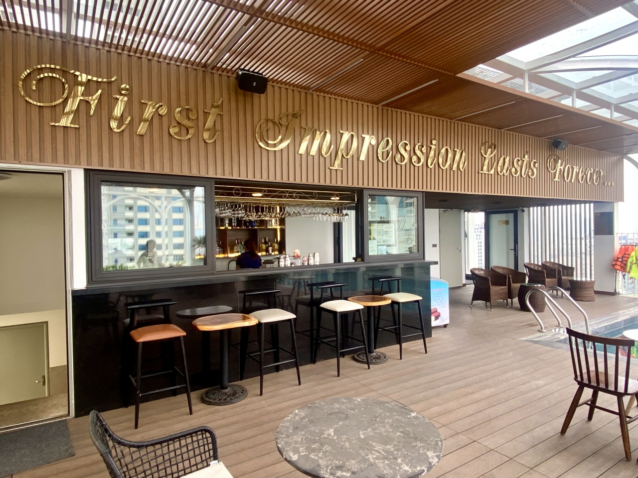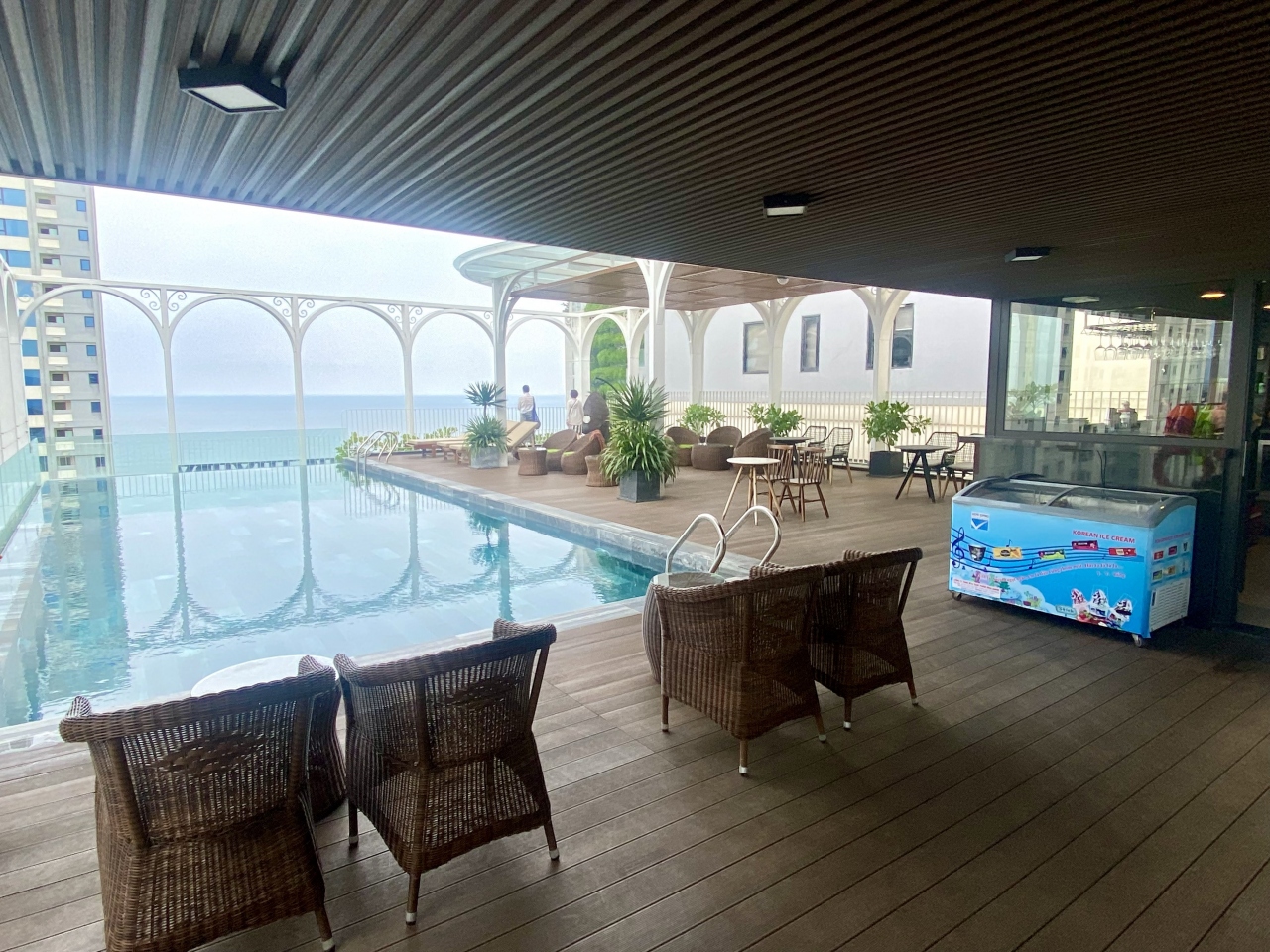 屋上のプールからの眺めも良いです。金、土、日はドラゴン橋の色が変わるのも見えました。水深が深いため子供がほとんど来ないのもいいです。大人もほとんど来ませんでしたが。プールバー、喫煙エリアもあるので便利でした。プール奥の部屋にはスポーツジム、トイレ、シャワールームがあります。
