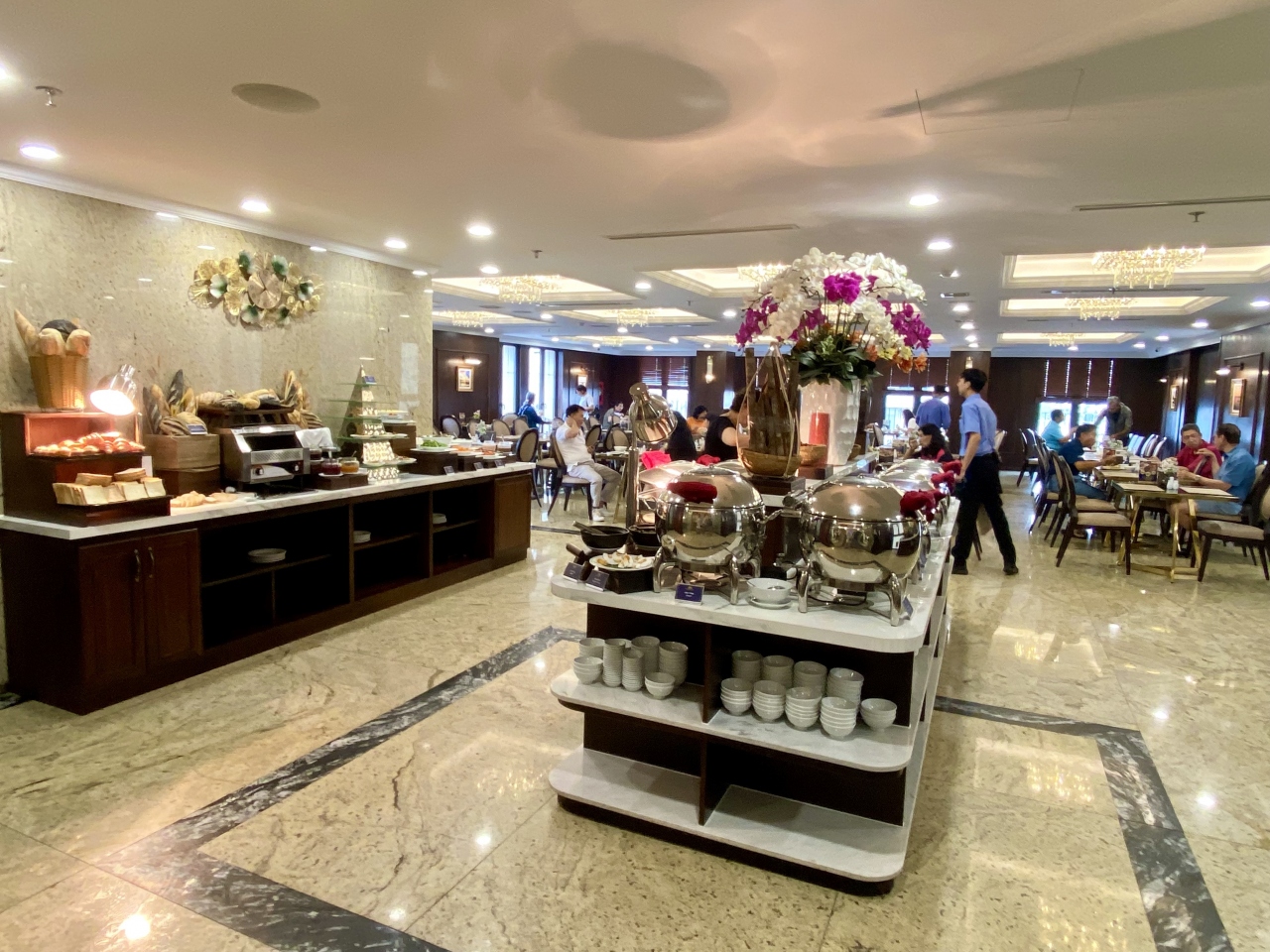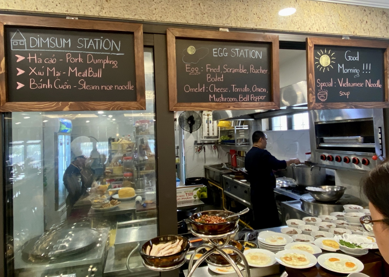 朝食ブッフェは種類も多く、日替わりで変わるので色々楽しめました。5泊しても飽きることはありませんでした。パンだけはもう少し美味しかったら良かったのですが。会場のエアコンが寒いので上着が必要です。