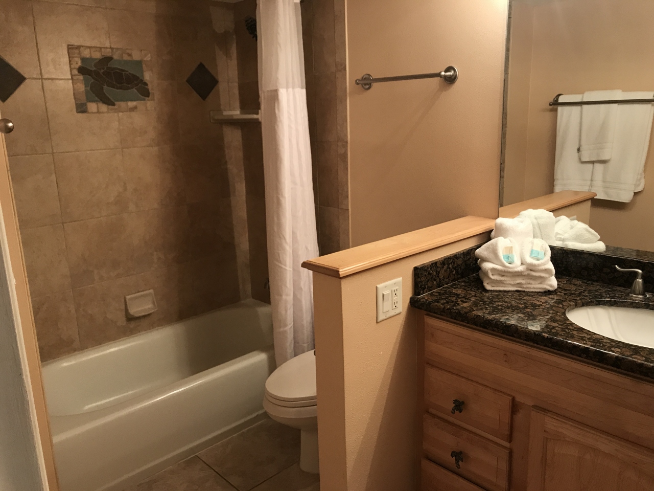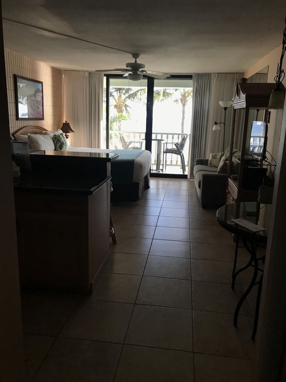 部屋は適度な大きさで、キッチンもバスタブもあり、ベッドは寝たままビーチが見える高さ、ラナイにはテーブルと椅子もあり朝食を海を眺めながら食べられて最高でした