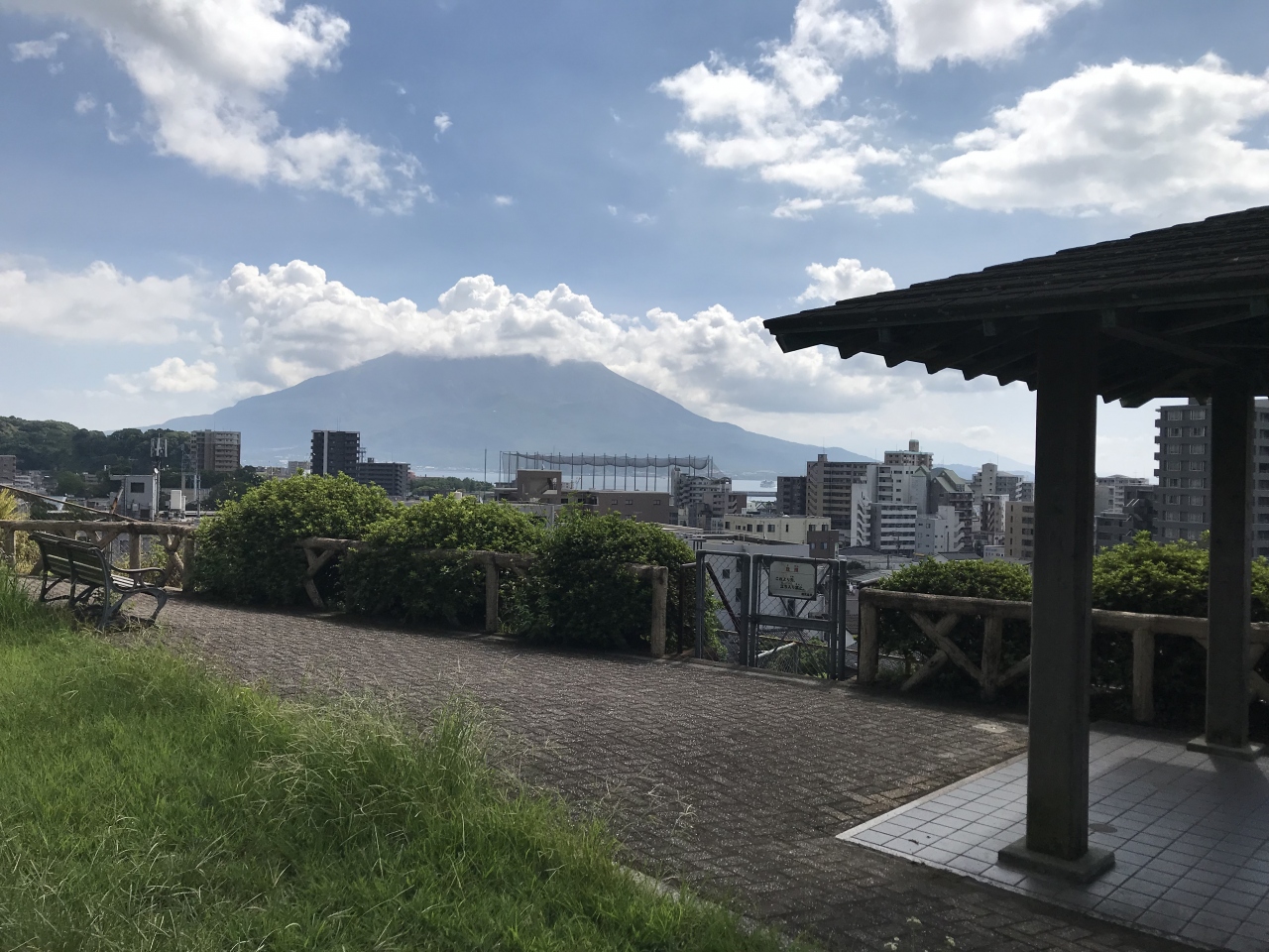 鹿児島市内を見下ろす小高い場所にある南洲公園の一角にあり、桜島を眺める立地にあります
