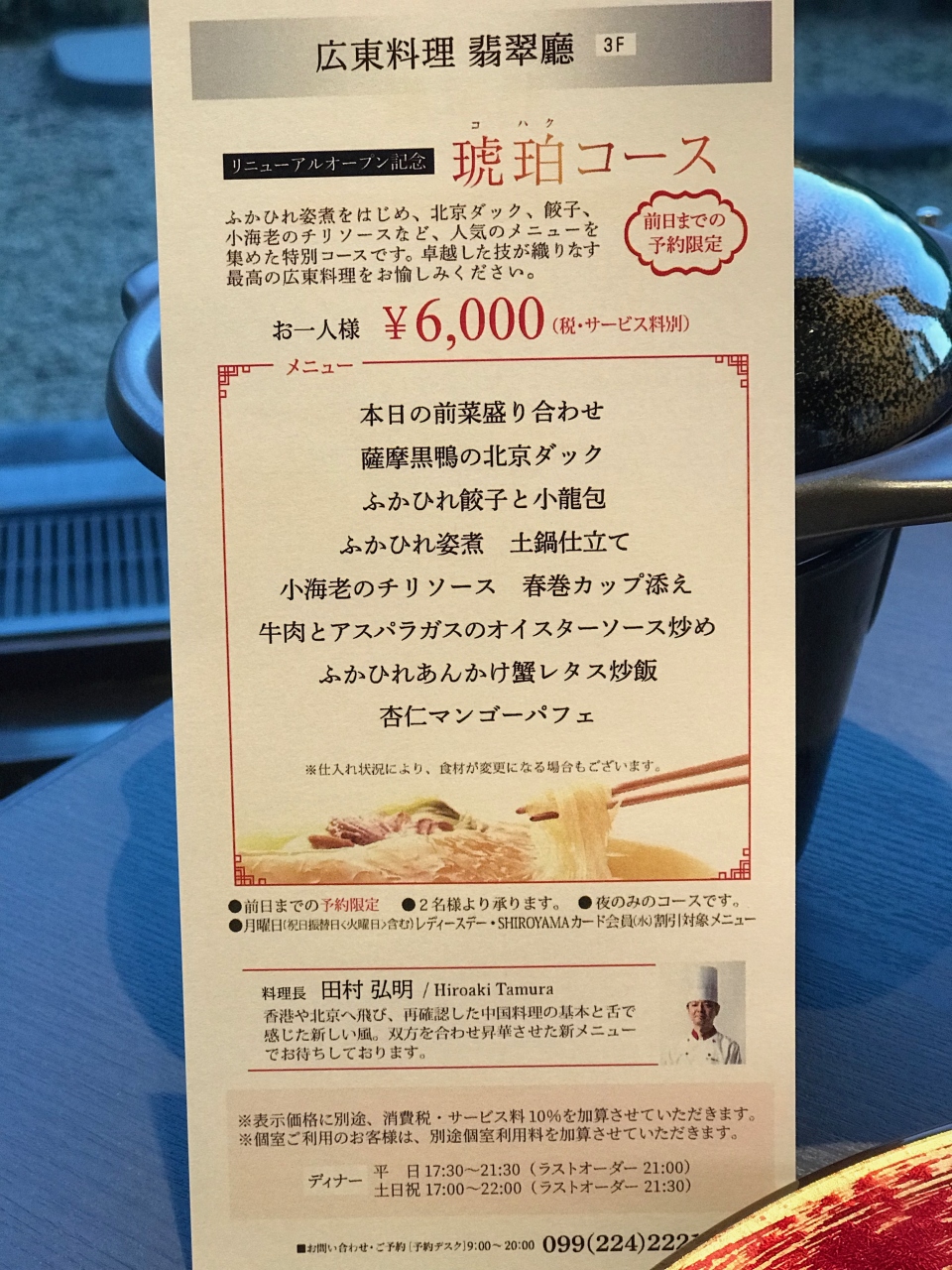 リニューアルオープン記念の特別なディナーコース設定があったので、そちらを予約していただきましたが、普段なら手が出ないフカヒレがメインのコースで、味も価格設定も大満足でした