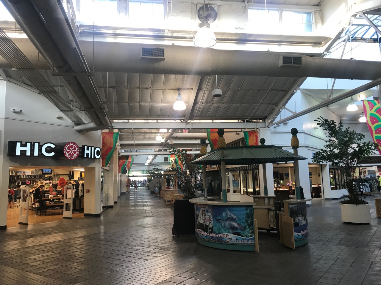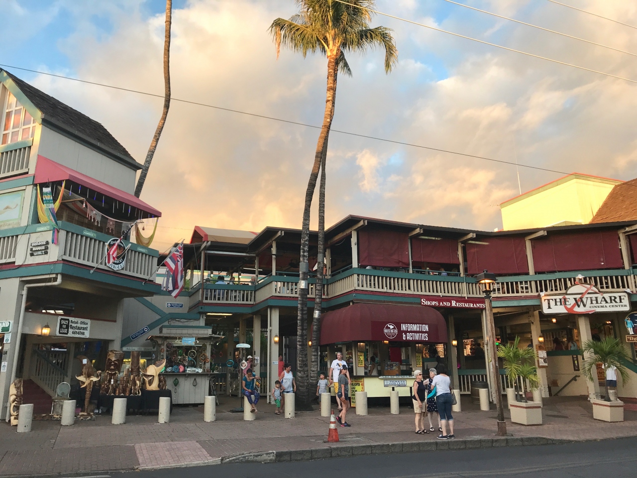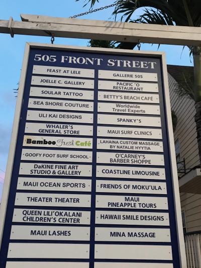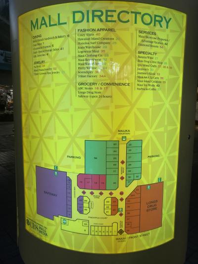 また、建物の裏側に出るとワーフ・シネマセンターのマウイ・バス停があり、次がアウトレット、その次がラハイナキャナリー・モール、その次がホエラーズ・ヴィレッジ となります
