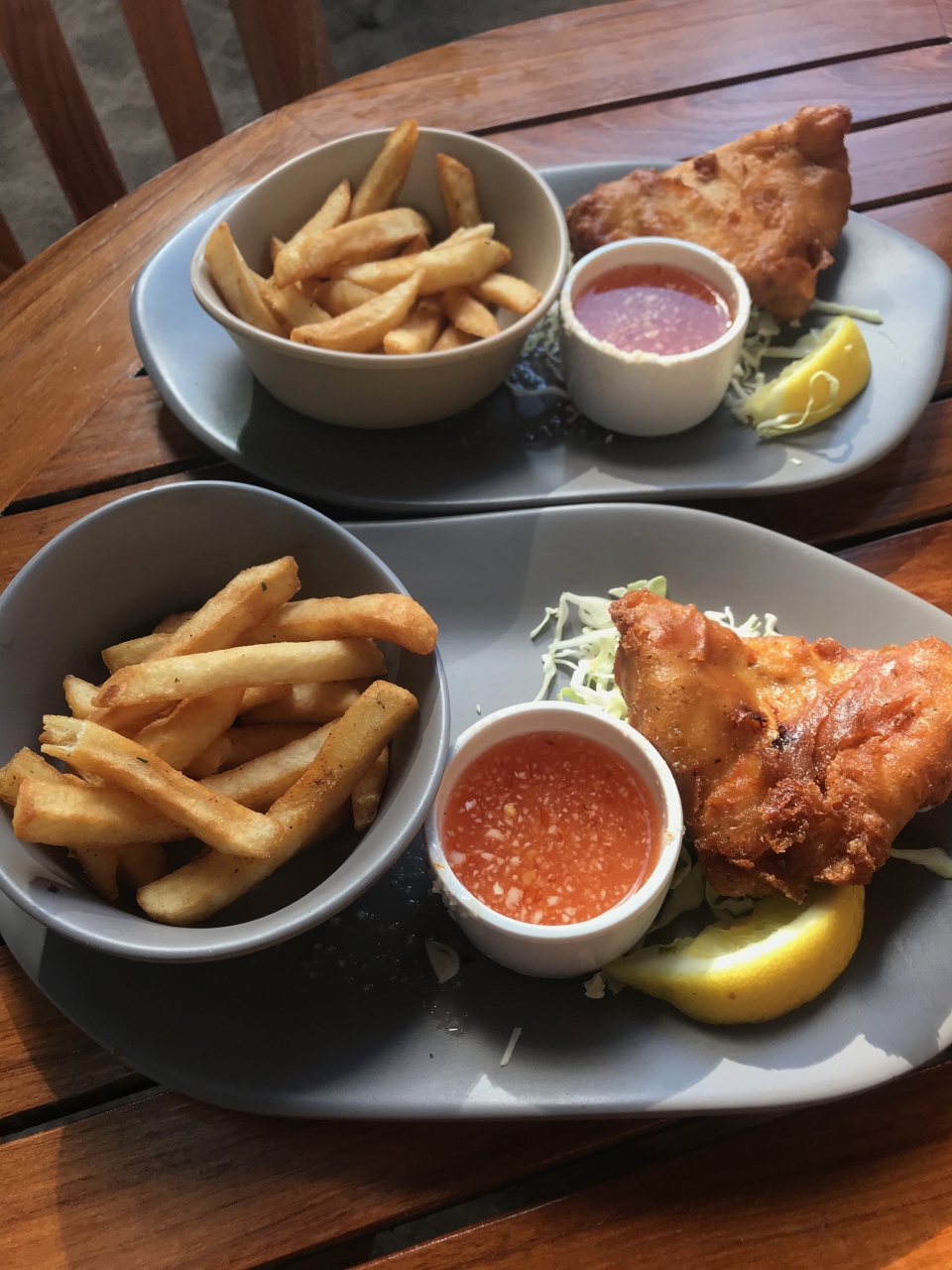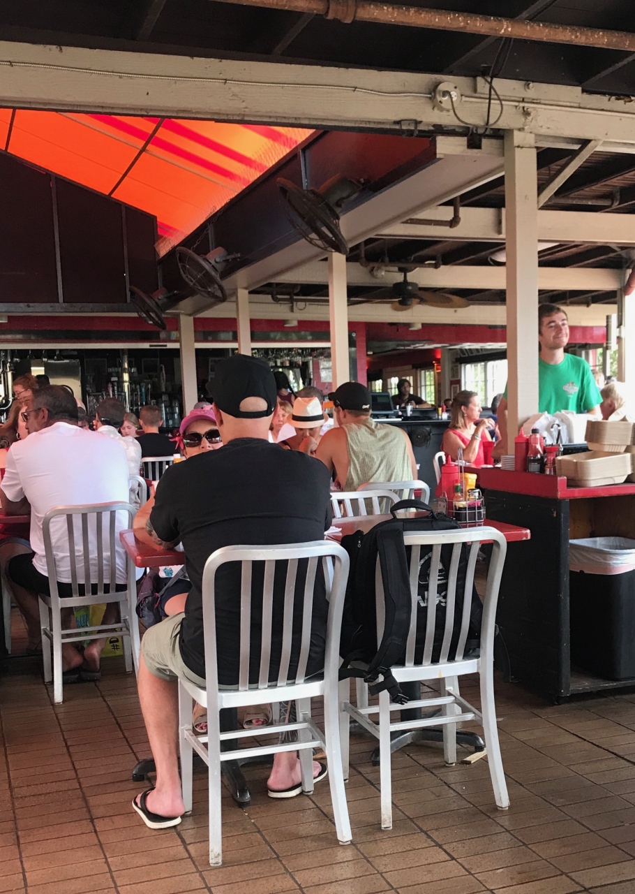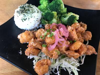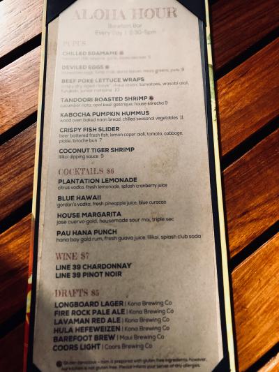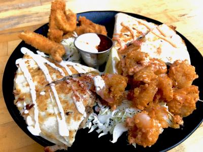 サンプラー・プレート(21.5$)というエビフライ、イカフライ、カルア豚、など色々と入ったセットが人気で、エビがプリプリでビールが進みます