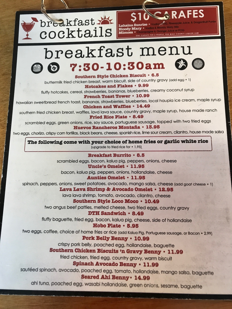 滞在していたホテル「ラハイニ・ショアーズ」の隣の商業施設「505」の中にあり、朝8時から朝食が食べられます