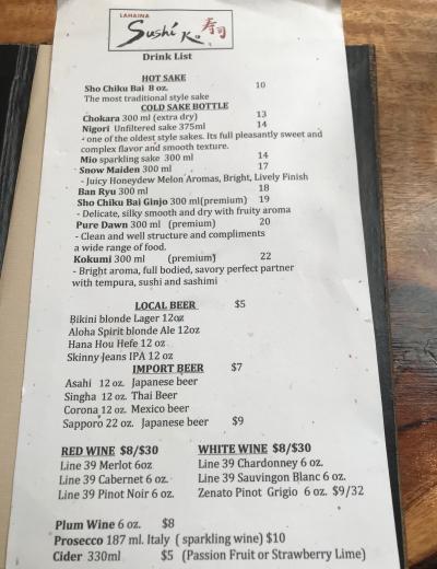 ワインより日本酒・超辛(300ml 、13$ )の方が割安な感じです
