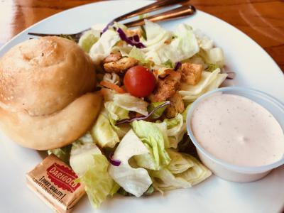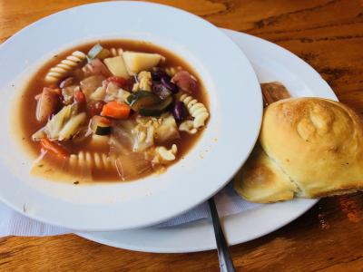 あとサラダとミネストローネを食べましたが、こちらにも美味しいパンが付いていたので、こちらも持ち帰って、朝食の時に部屋で温めていただきました