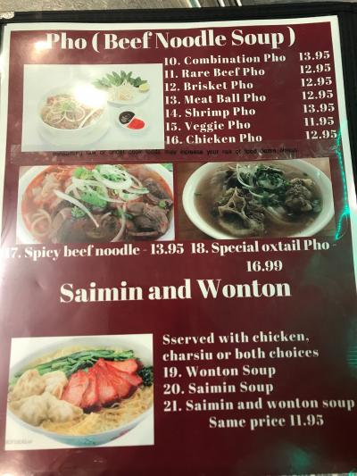 生春巻き(2P=7.5$)、蒸し餃子(10P=7.25$)、ベジタブル・フォー(11.95$)でトータル26.7$でした