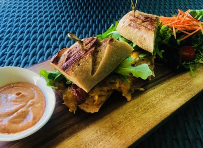 ターキーのパニーニ(15$)、ジンジャー・ターメリック・ジュース(6$)