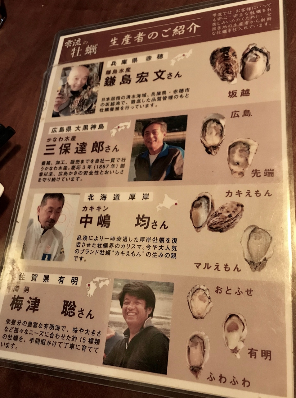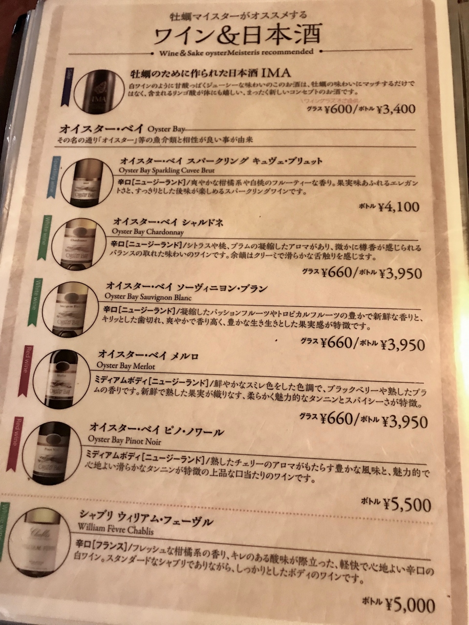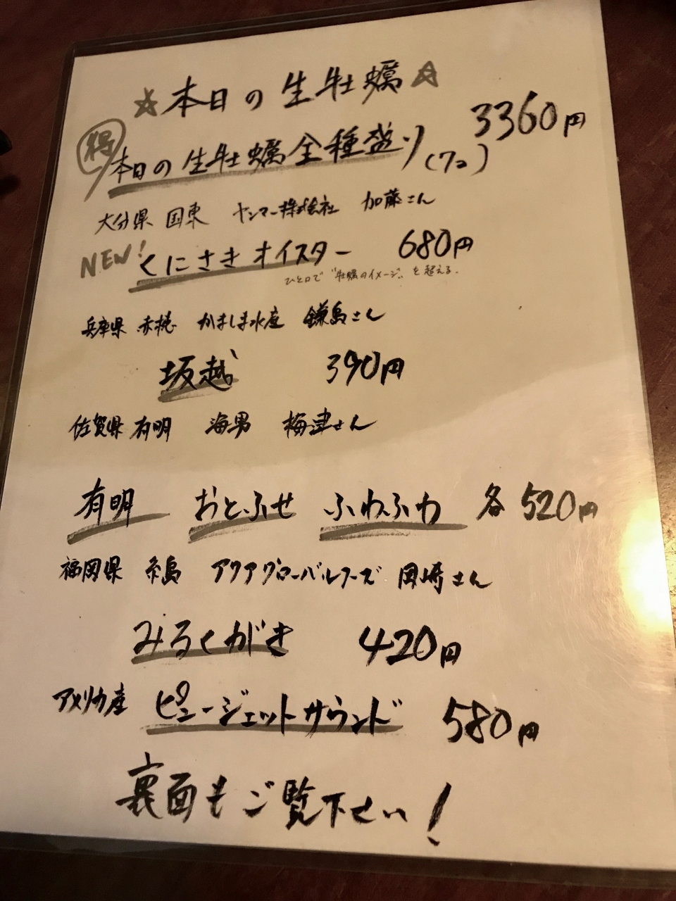 当日は生牡蠣は7種類。とりあえず3種を食べて美味しかったので、追加で違う3種をオーダー。