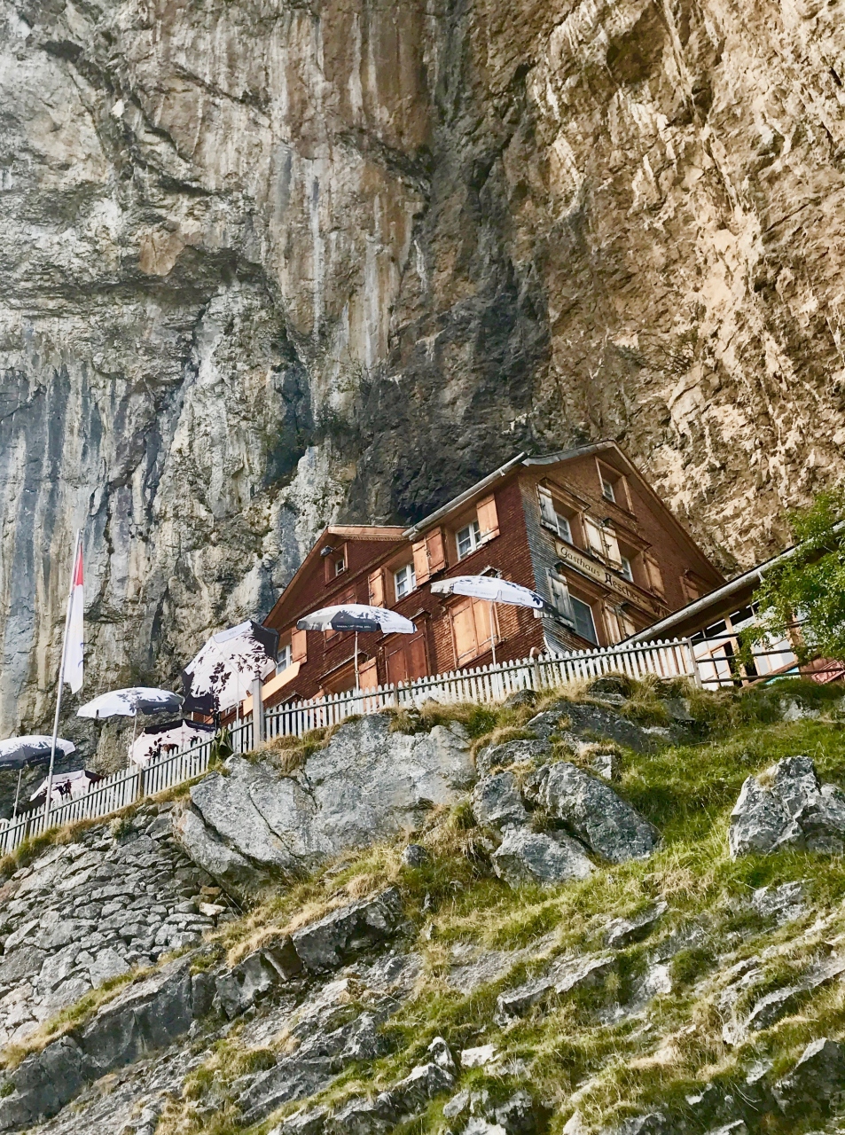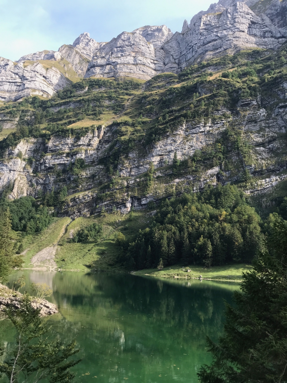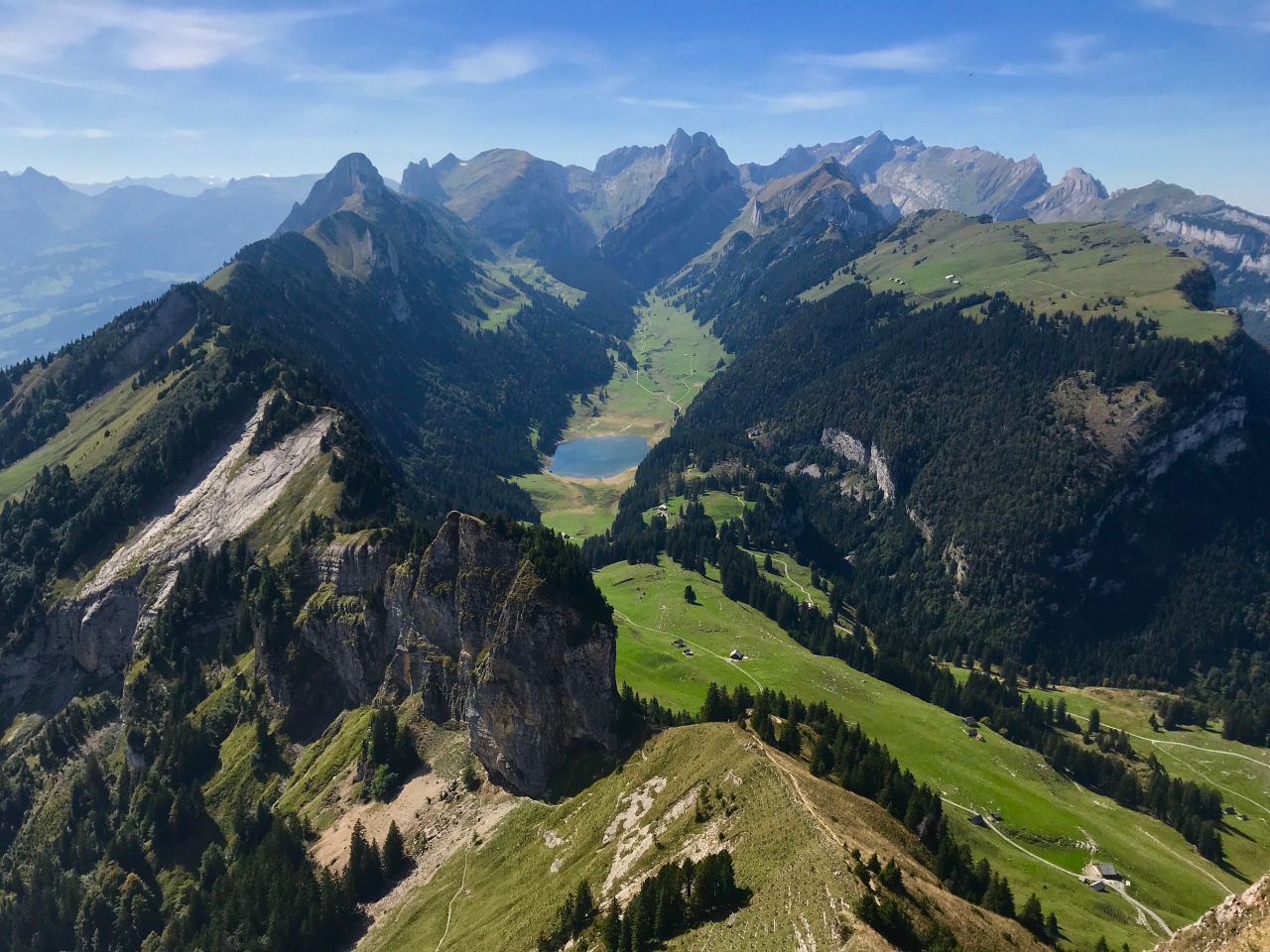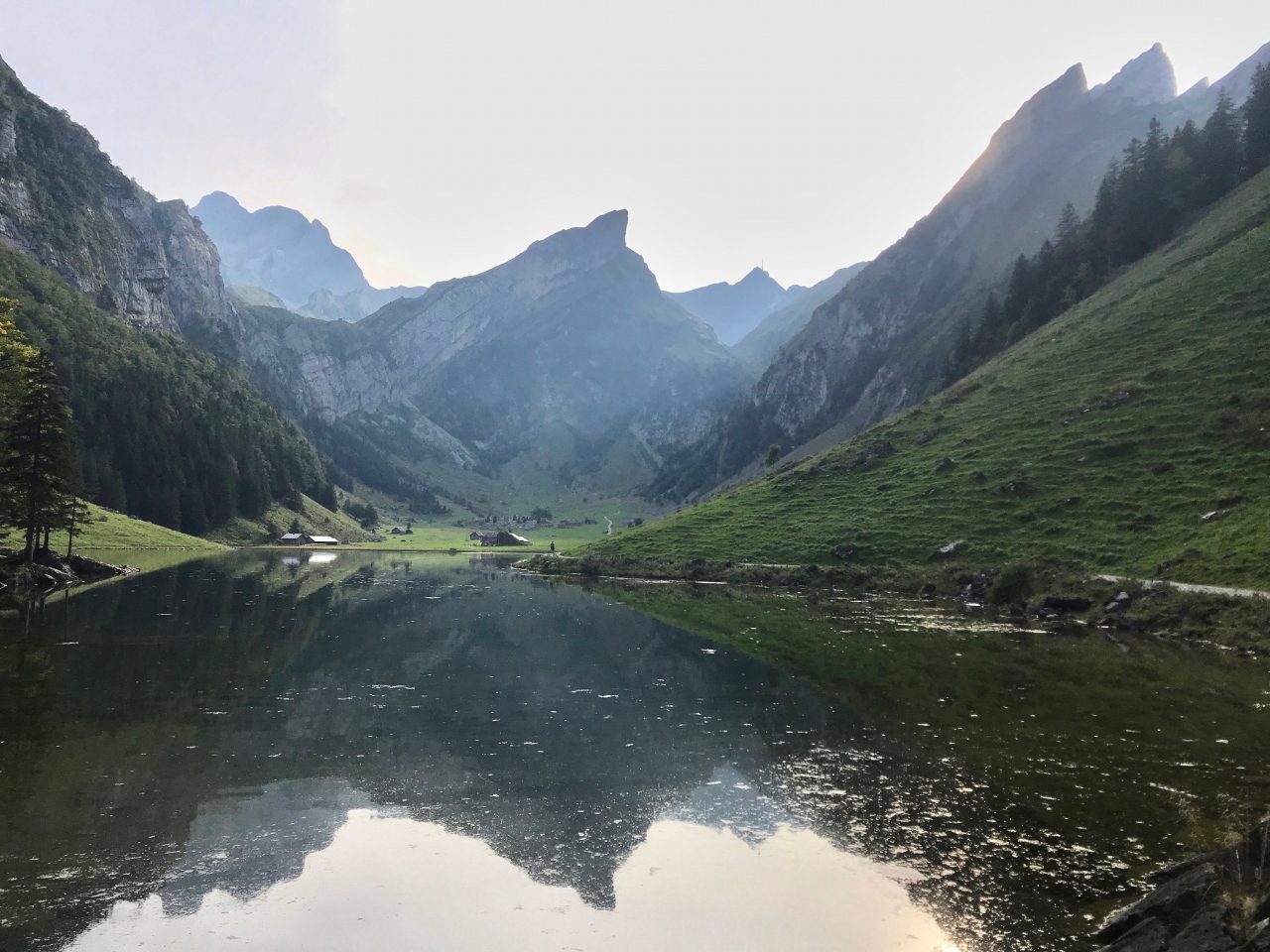Ebenalp Cable Carでエーベンアルプに登り、そこから、エッシャーを経由してゼーアルプセーまで歩いて下り、ここで休憩しました