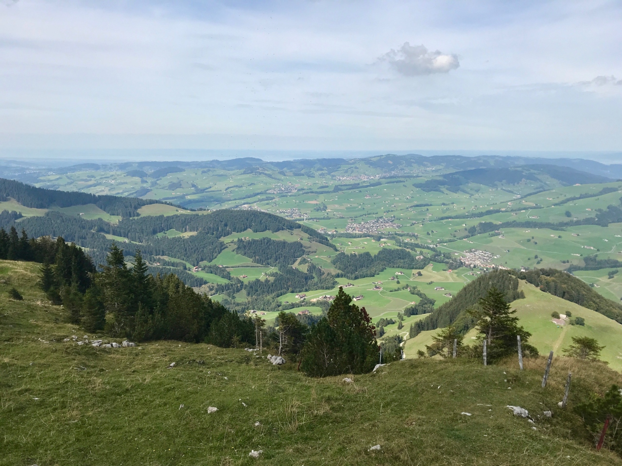 乗ってきた方向を眺めると、小山の向こうはザンクト・ガレン、その向こう側にはボーデン湖も見えました