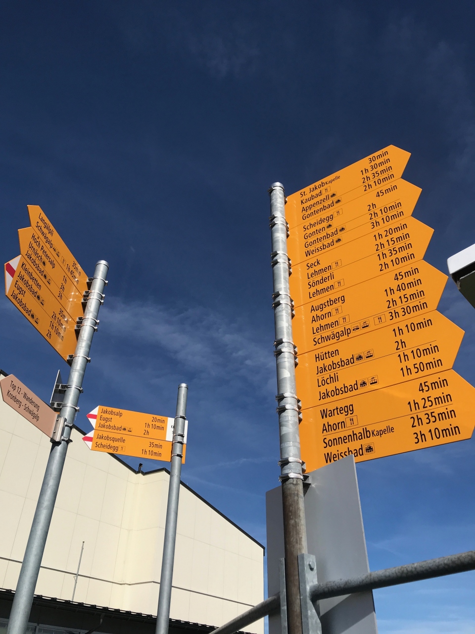 このトップからは沢山のハイキングコースがあり、道標では赤白マークは少しで、ほとんどが比較的高低差の少ない初心者向け