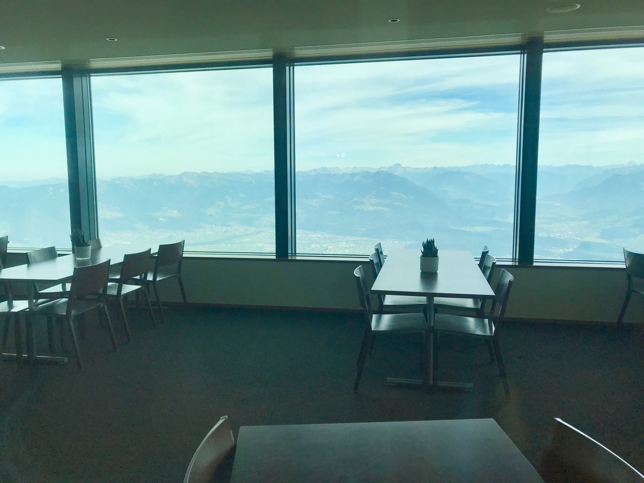 展望レストランは回転式でしたが、お天気だったので外のテラス席で食べる方ばかりで、部屋の中には誰もいませんでした