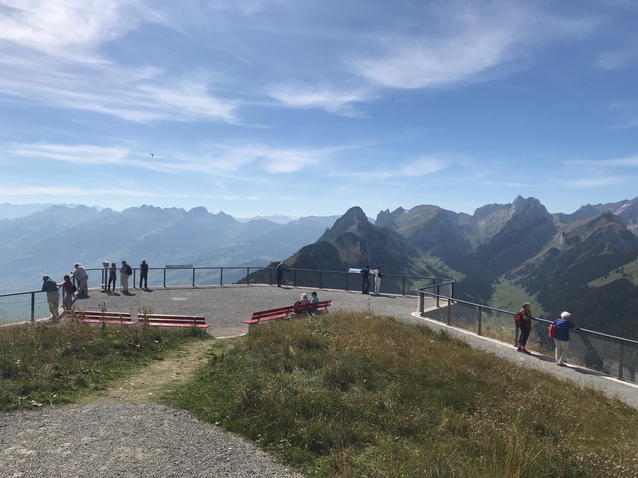 15:25 ロープウェイでエーベンアルプに到着し、周辺の山々や風景を堪能した後、下山を開始しましたが、ここからはいくつものトレッキングコースがありました