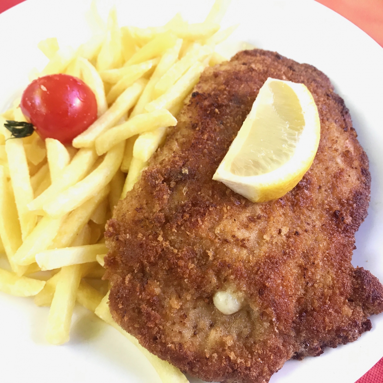 ハイキングで歩いた後なので、肉が食べたくなりコルトンブルー(29CHF)を、二人でシェアーして食べましたが、カリカリで美味しかったです