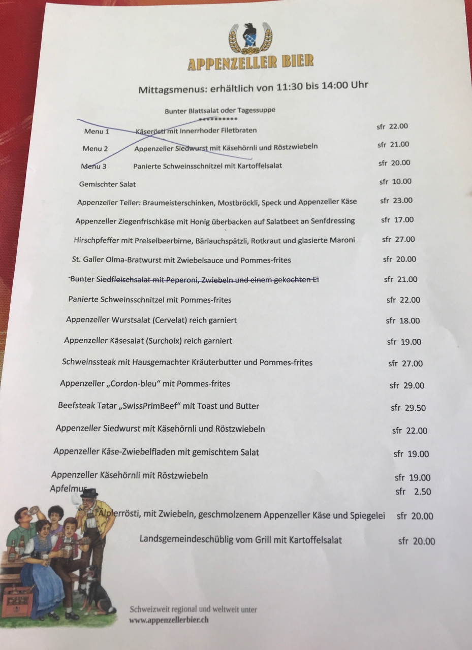 ホテルのレストランが休業日だったので、ランツゲマインデ広場前の「Restaurant Sonne」で早めの夕食にしました