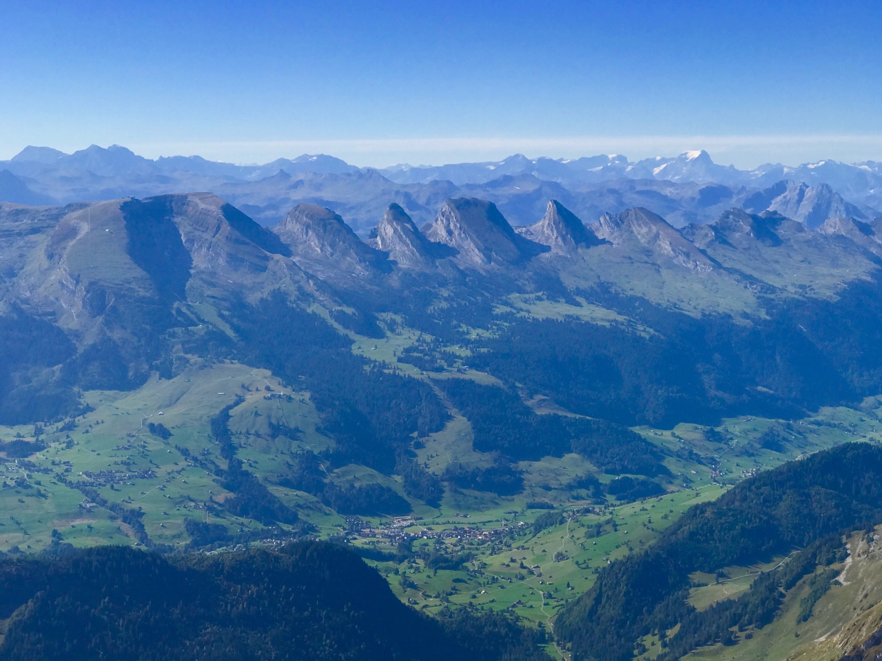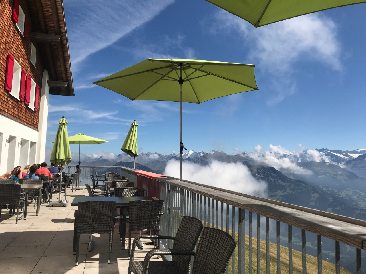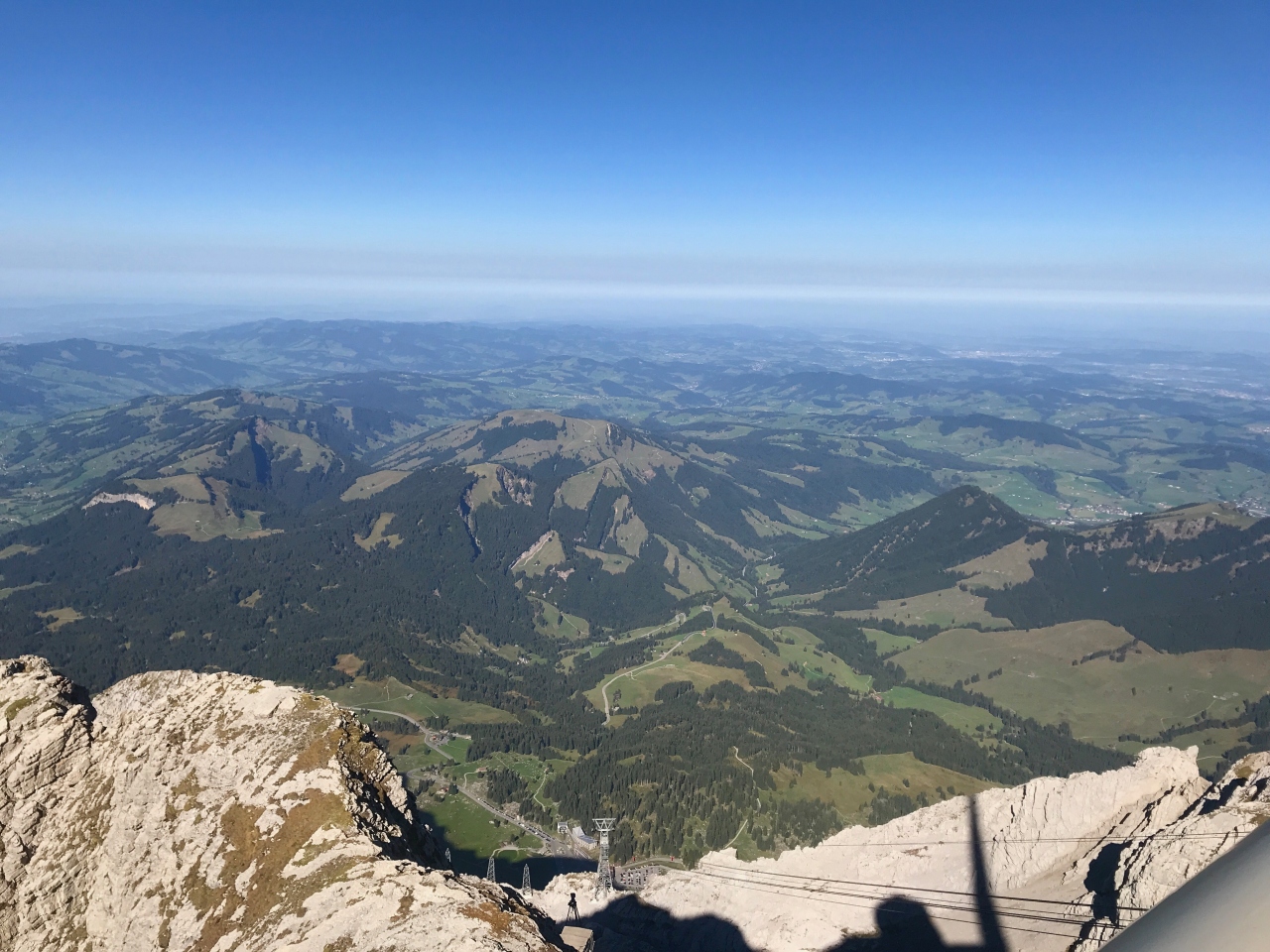 この地域では一番標高が高いだけあって、360度の眺望が広がり、周辺6ケ国が見渡せますし、遠くにはユングフラウなどのベルナーオーバーランドのアルプスも見えました