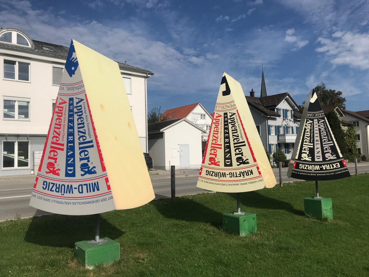 アッペンツェラーチーズのモニュメントがあったり、さらに記念撮影にぴったりの巨大チーズもありますので、のっけからテンション上がります