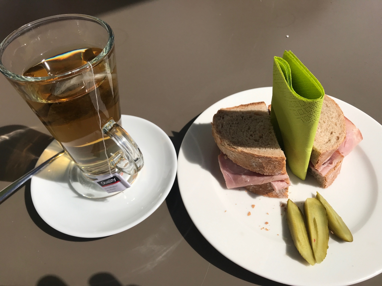 サンドイッチはパサパサのパンでしたが、歩いた後なので美味しかったです