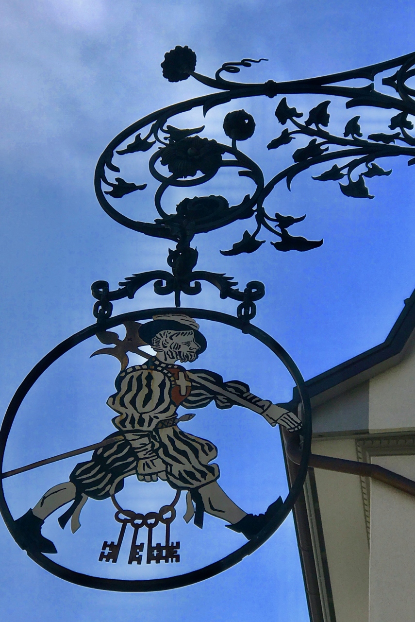 広場に何か特徴があるかと言えば特にありませんが、このあたりはホテルやお店には、仕事の内容がわかる特徴ある看板が飾られているので、それらを見て回るのは楽しいです
