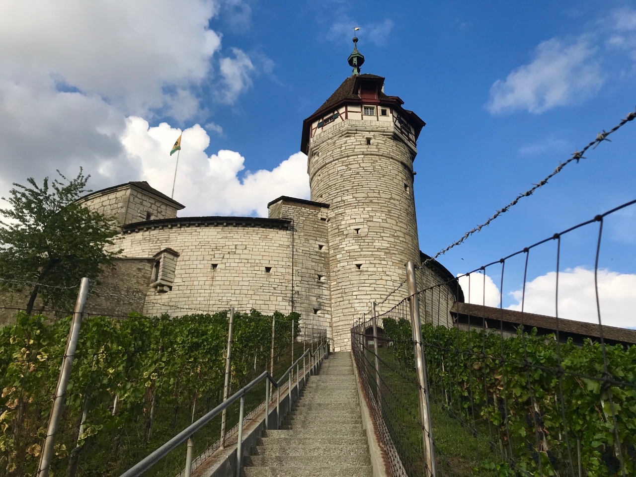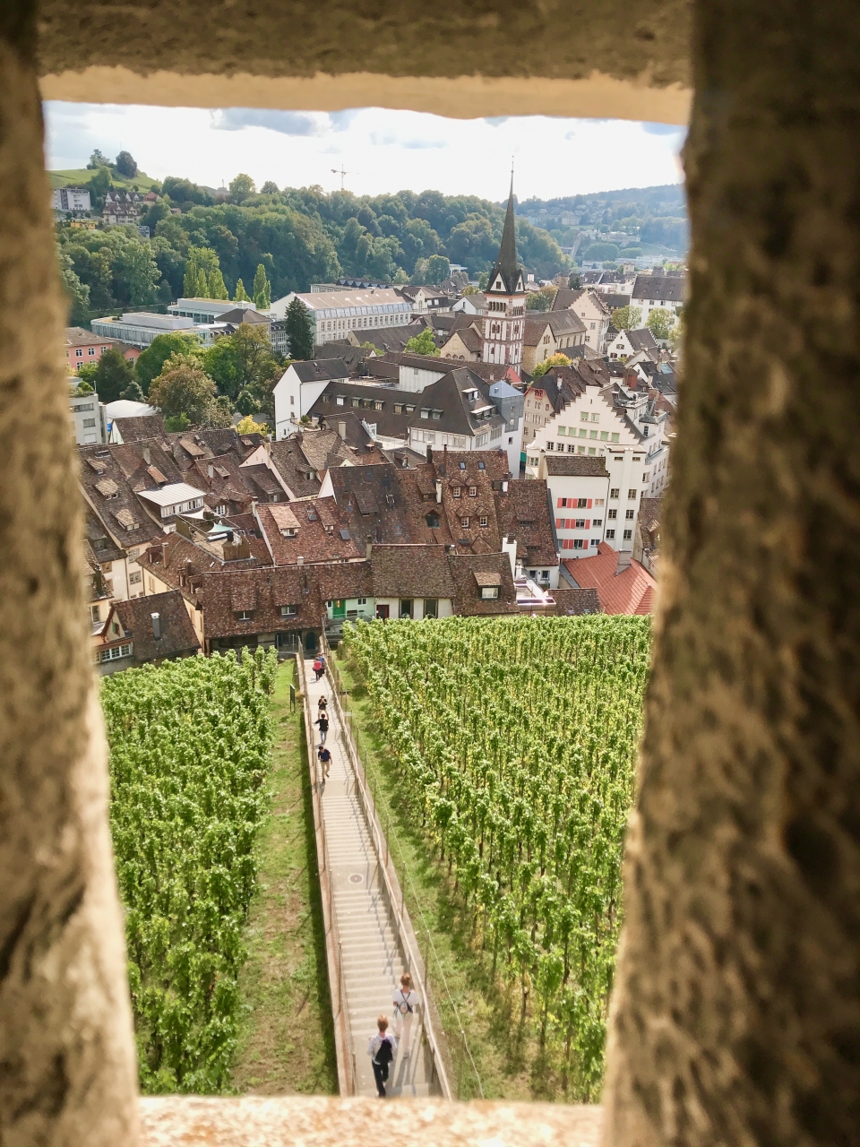 螺旋状の階段を登って行くと、階段の途中の窓からの街並み、ライン川の眺めが良く、ぶどう畑も美しいです