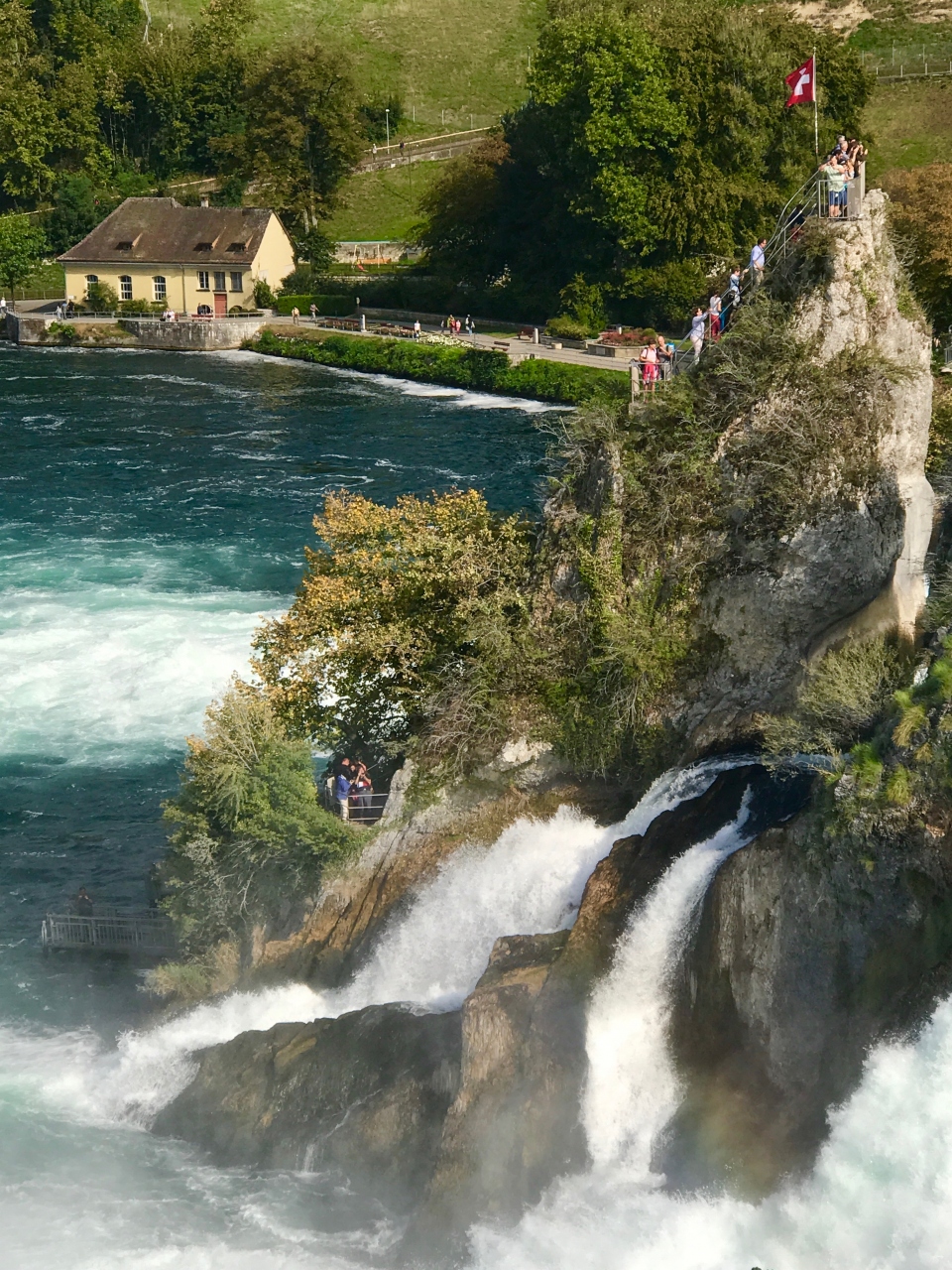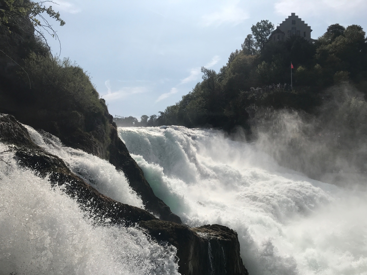 まずはラウフェン城に入り、上から滝を見ながら歩きますが、落差は23mとあまりありませんが横幅があって複雑な流れなので、春の雪解けシーズンならさらに迫力があるでしょう