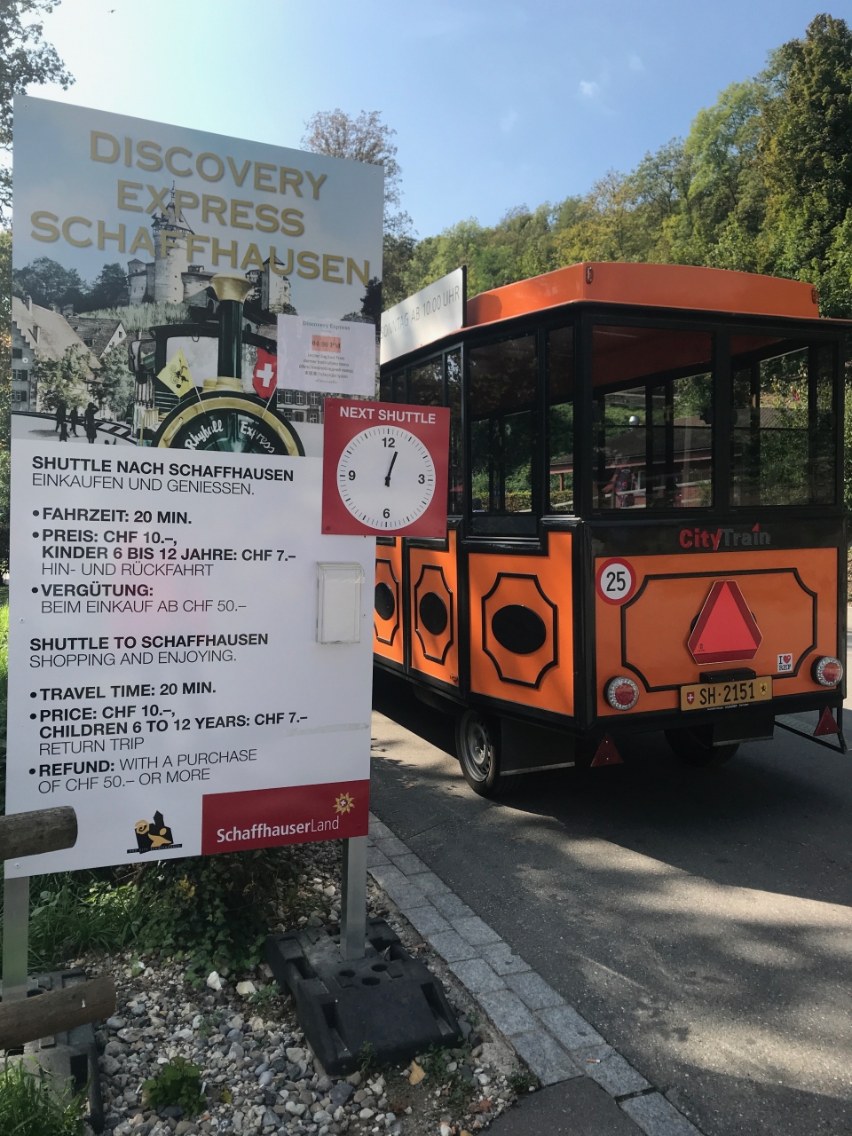 帰りは列車型のバスにレストラン前から乗り (片道5CHF)、シャフハウゼンの船着場行きですが、14:50大聖堂で降ろしてもらいました- 旅行時期