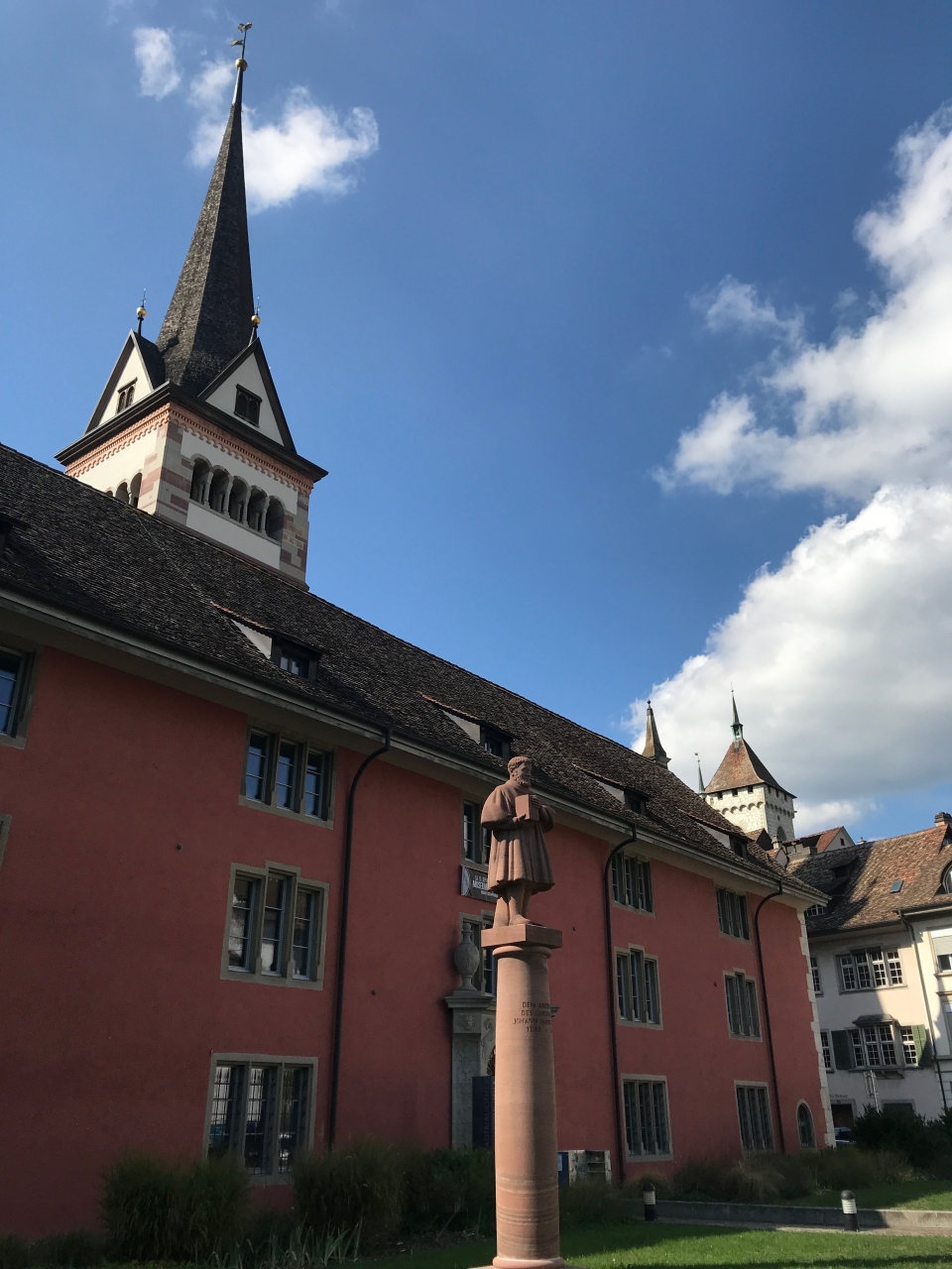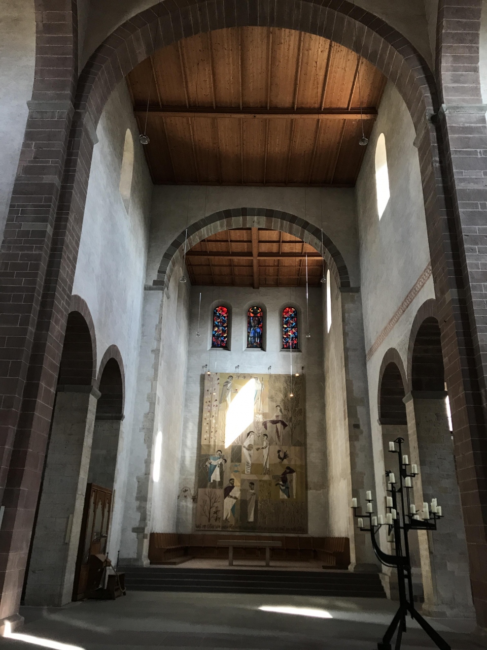 中に入ってみると、スイスを代表する11世紀のロマネスク様式を残すらしいですが、なんか新しい感じで、思ったより質素でした