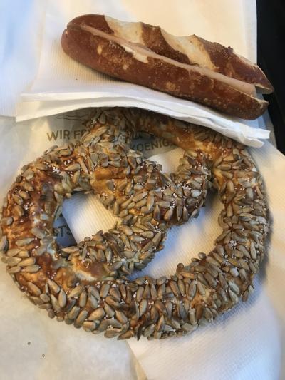 プレッツェルにチーズやハムを挟んだサンドや、プレーンのもありますが、絶対に種付きの方がオススメです- 旅行時期