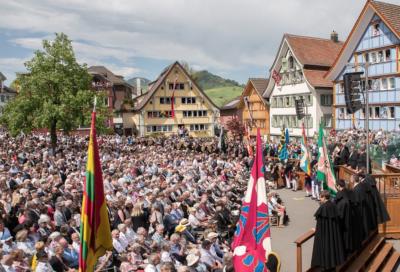 この広場の名前の由来は、毎年4月の最終日曜日、ランツゲマインデと呼ばれる「青空議会」が行われるからで、州の最高議決機関が行う、挙手によって投票を行うという昔ながらの直接民主制スタイルが残っていて、当日はこれを見るための観光客でホテルの予約は一杯になるようです- 旅行時期