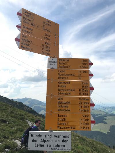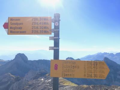 15:25 ロープウェイでエーベンアルプに到着し、周辺の山々や風景を堪能した後、下山を開始しましたが、ここからはいくつものトレッキングコースがありました