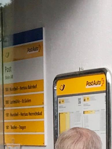 工房を出て少し左方向の向かいに郵便局があり、そこがシュタインのメインのバス乗り場とわかりました